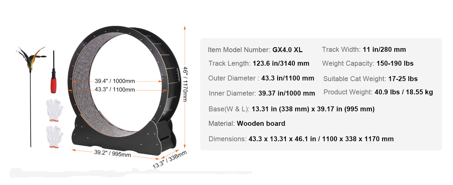 - You gain versatility: a multi-use setup that works as an exercise wheel, a cozy cat bed, and stylish furniture, with pre-installed expansion screws, gloves, a screwdriver, and a detachable carpet teaser for added play.